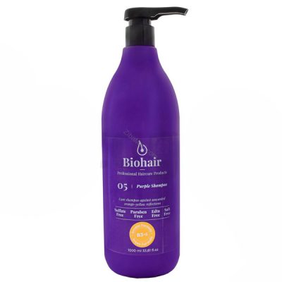 شامپو بنفش بدون سولفات ضد نارنجی و زردی مو Biohair مناسب موهای رنگ شده 1000 میل