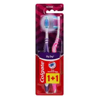 مسواک هلندی کلگیت Colgate Zig Zag Plus Medium با برس نرم بسته 2 عددی