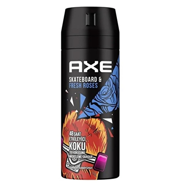 اسپری بدن دئودورانت مردانه آکس مدل Skateboard & Fresh Roses حجم 150 میل