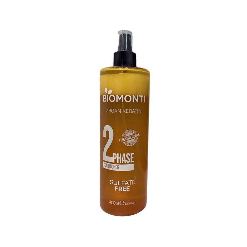 اسپری دوفاز بدون سولفات بیومونتی biomonti حاوی آرگان و کراتین حجم 400 میل