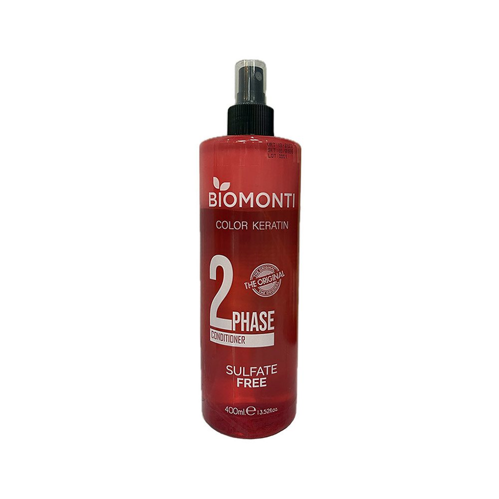 اسپری دو فاز نرم کننده مو بیومونتی Biomonti بدون سولفات مناسب موهای رنگ شده 400 میل