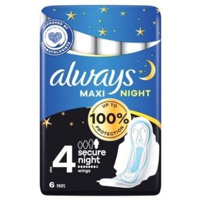 - مناسب برای شبهای با جریان قاعدگی زیاد؛ سایز 4 (Night) بسته 6 عددی