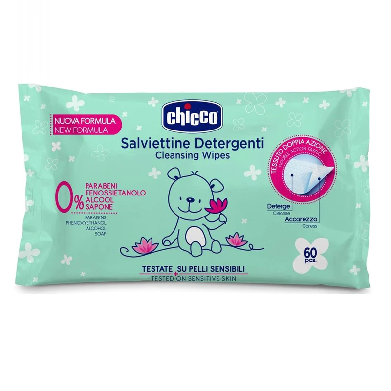 دستمال مرطوب کودک چیکو بسته 60 عددی | پاککنندگی ملایم و مناسب پوست حساس