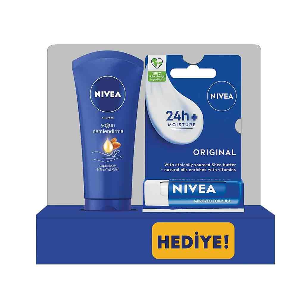 ست مرطوب کننده دست آلمانی نیوآ Nivea El Kremi + Moisture Lip Balm بالم محافظ لب مناسب پوست خشک 75 میل