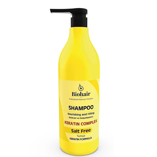 شامپو بدون نمک تغذیهکننده و حجمدهنده مو Biohair حاوی کمپلکس کراتین 1000 میل