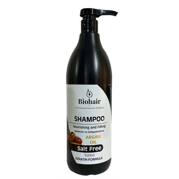 شامپو بدون نمک تغذیه کننده و حجم دهنده مو Biohair حاوی روغن آرگان 1000 میل