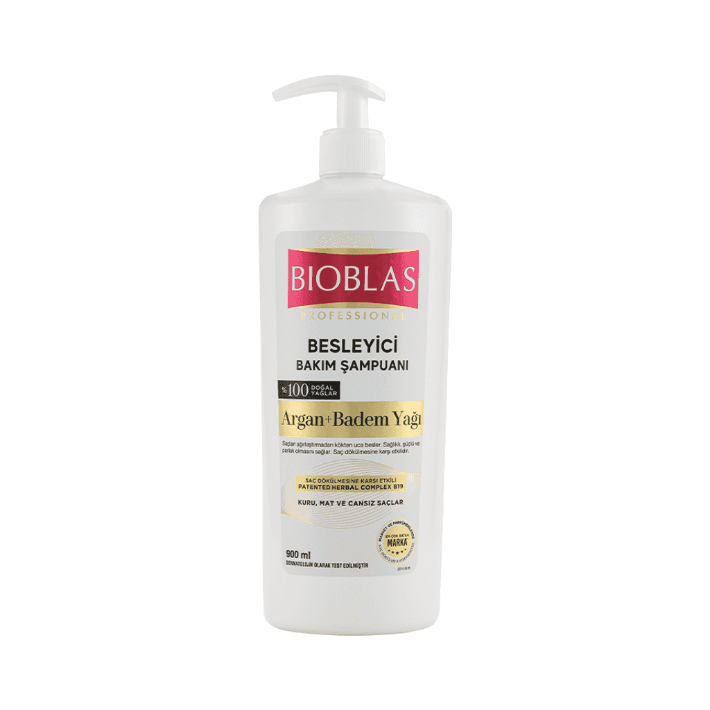 شامپو بیوبلاس آرگان و بادام با خواص تغذیهکننده Besleyici برای موی خشک و کدر حجم 900 میل
