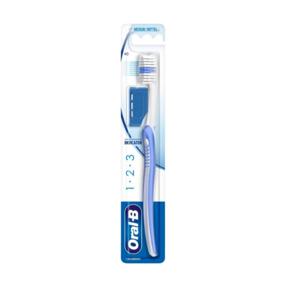 مسواک اورال بی مدل 1.2.3 INDICATOR با برس متوسط درپوش دار