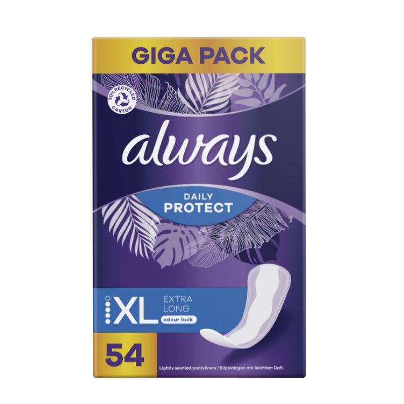 این محصول در بستههای Giga Pack با 54 پد ارائه میشود که اقتصادی و مقرون به صرفه است. جعبه این پدها از 100% کاغذ بازیافتی ساخته شده و نشاندهنده تعهد Always به حفظ محیط زیست است. پدهای Daily Protect با داشتن چهار قطره جذب، قدرت جذب قابل توجهی برای ترشحات روزانه و حتی روزهای سبک قاعدگی دارند.