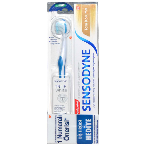 پک خمیر دندان سنسوداین مدل Tam Koruma حجم 75 میل به همراه مسواک با برس نرم