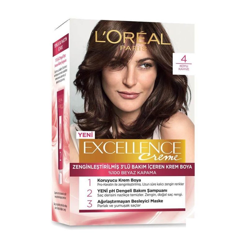 کیت رنگ مو لورآل سری Excellence شماره 4 رنگ قهوه ای تیره